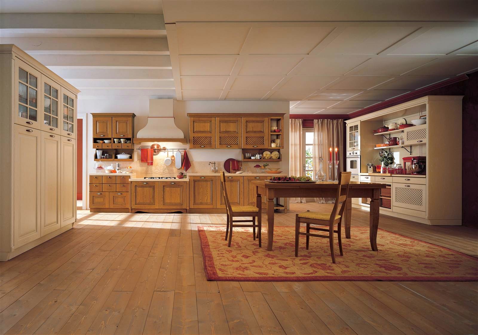 Классические итальянские кухни Antares станут идеальным вариантом для загородного дома. Но и для городской квартиры дизайнеры предлагают небольшие композиции, которые создадут уютную атмосферу теплого средиземноморья на вашей кухне. Заказывая кухонный гарнитур, вы можете выбрать модель фасада и вид древесины, цвет, финишную отделку (патинирование, эффект состаривания, матовую или лакированную поверхность). Основной корпус кухни изготавливается из ламинированного ДСП с низким выделения формальдегида класса Е1, поэтому мебель относится к среднему ценовому уровню, чем может порадовать поклонников итальянской классики.